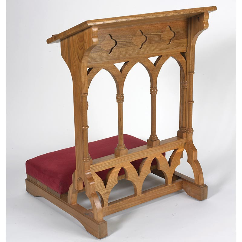 GOTHIC PADDED KNEELER - OAK STAINED SOLID MAPLE HARDWOOD.