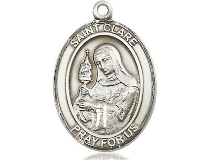 Solid Sterling Silver Saint Clare Medal. Size: 3/4" High x 1/2" Wide.