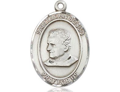 Solid Sterling Silver Saint John Bosco Medal. Size: 1" High x 3/4" Wide.