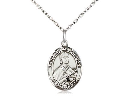 Solid Sterling Silver Saint Gemma Medal With Sterling Silver Light Rope Chain.