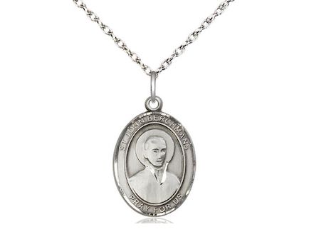 Solid Sterling St. John Berchmans Medal With Sterling Light Rope Chain.