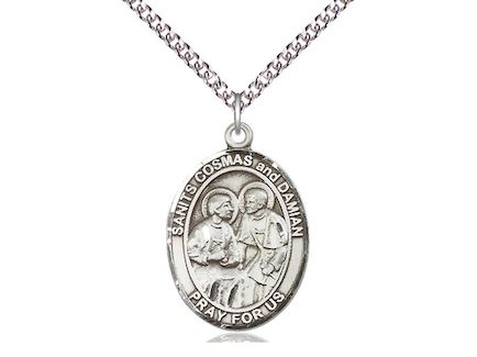 Sterling Saints Cosmos & Damian Medal With Sterling Curb Chain.