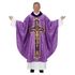 This gothic style chasuble is tailored in purple Avignon jacquard, and features a velvet cowl collar.